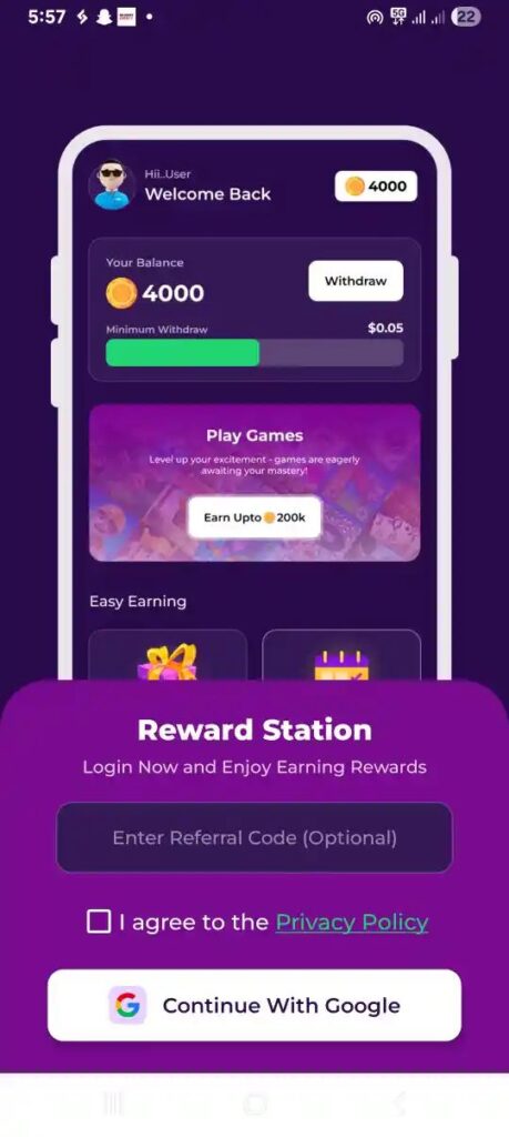 अगर आपको Reward Station App में ज्यादा Coin कमाने हैं , तो आप हमारा Referral Code EG07LJ का USE कर सकते हैं |