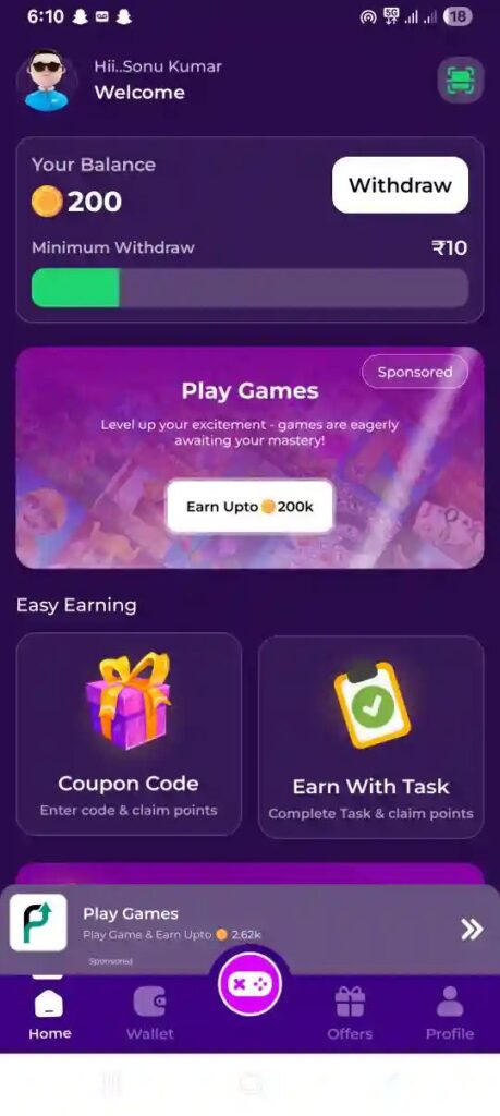 इस ऐप पर आप 20 मिनट तक गेम खेलकर बड़े ही आसनी से ₹30 से ₹20 कमा सकते हैं।