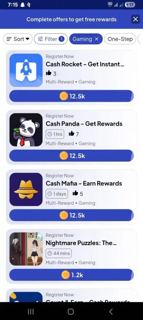 अब इसके बाद आपके सामने Cash Panda, Cash Mafia जैसे 80 से भी अधिक गेम्स मिल जायेंगे जिन्हे खेलकर आप पैसे कमा सकते हैं।
