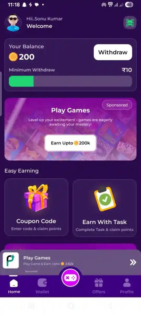 अब Reward Station App से गेम खेलकर पैसे कमाने के लिए बस आपको Offer वाले ऑप्शन पर क्लिक कर देना है।