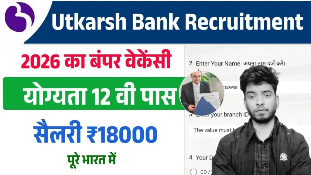 Utkarsh Bank Recruitment 2026 : नजदीकी शहर में मिलेगा जॉब , 12 वी पास लोग अभी ऑनलाइन फॉर्म भरे
